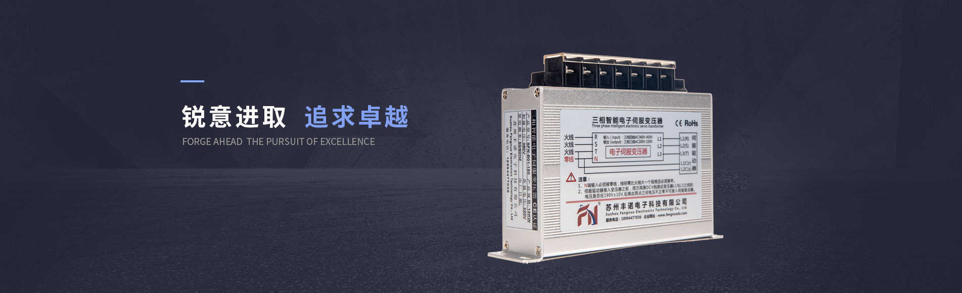 蘇州豐諾電子科技有限公司是國內專業從事變壓器研發、生產、銷售和服務為一體的高科技型企業。目前公司主要生產產品有:三相智能電子伺服變壓器、三相干式變壓器、單相隔離變壓器、穩壓器、調壓器、開關電源等產品...